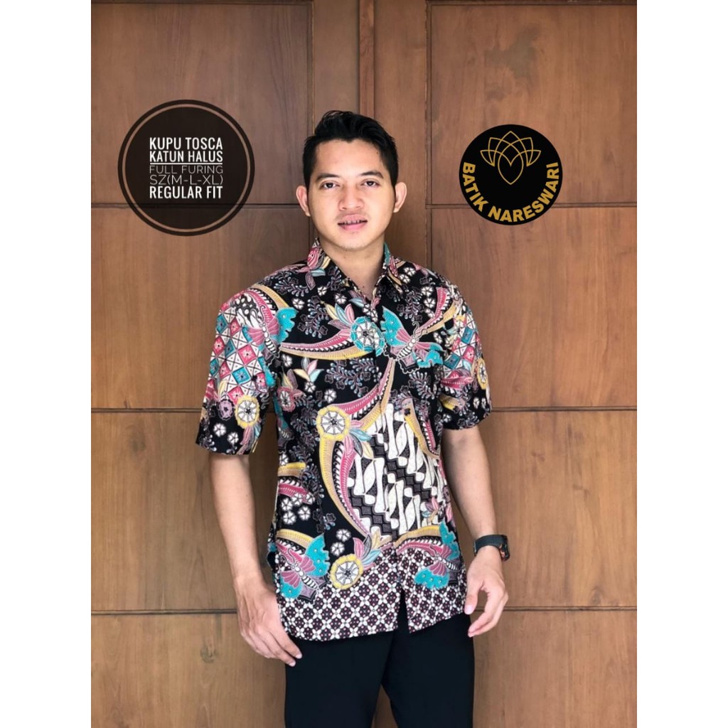 Promo Pakaian di Kabupaten Minahasa (1kg=5pcs) Kemeja Batik Lengan Pendek Batik Ori Nareswari Kupu Tosca Batik Solo Seragam Batik Kerja dari Tidak Ada Merek Kota Surakarta (solo)