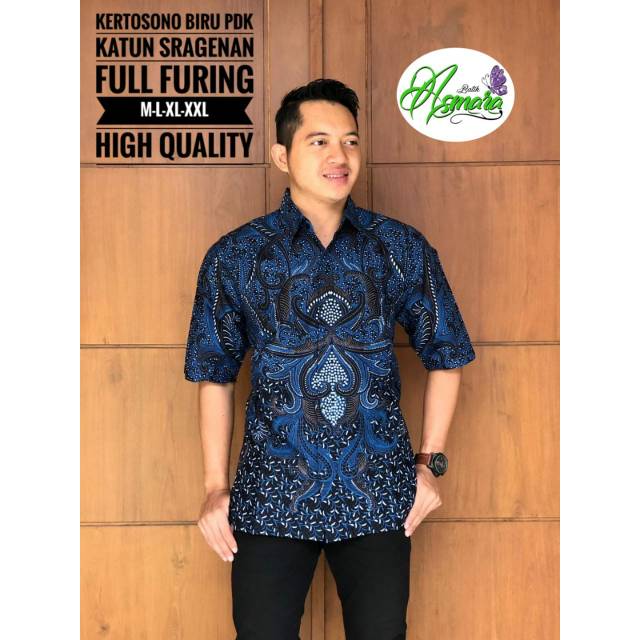 Name: Batik Solo Kertosono Biru Pendek Kemeja Pria Katun Halus Sragenan Full Furing