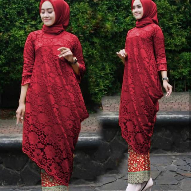 Tunik bahan brukat ada furing LD96 Pkiri73 Pkanan105 Ptengah90 +rok batik silk pinggang karet motif asli LP9