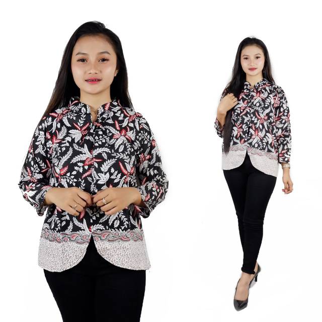 Jual Murah Pakaian W di Kabupaten Minahasa Tenggara Murah Batik Wanita Blus Atasan Wanita Warna Merah Pendek Kerah Sanghai Motif Anjani Sr Trolistore Bl dari Tidak Ada Merek Kota Pekalongan