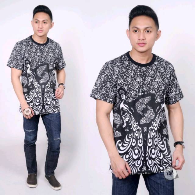 Kaos batik full print motif merak unisex bahan kaos catton semi jenis cardet texsture soft yang nyaman n adem untuk dipakai sehari-hari n tentunya murah