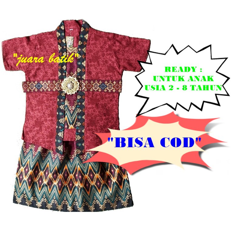 Grosir Fashion Bayi & di Kota Gorontalo Batik Anak Cewek Usia 2-8 Thn-kutubaru Maroon//seragam Batik Anak//kutubaru Anak//baju Anak Cewek dari Tidak Ada Merek Kab. Sleman