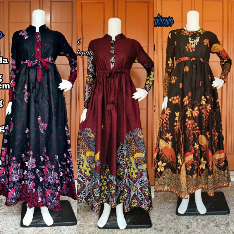 Gamis Batik Busui Resleting/kancing depan, tali pinggang ALLSIZE LD 104cm,Pb 137cm Bahan katun adem dan halus