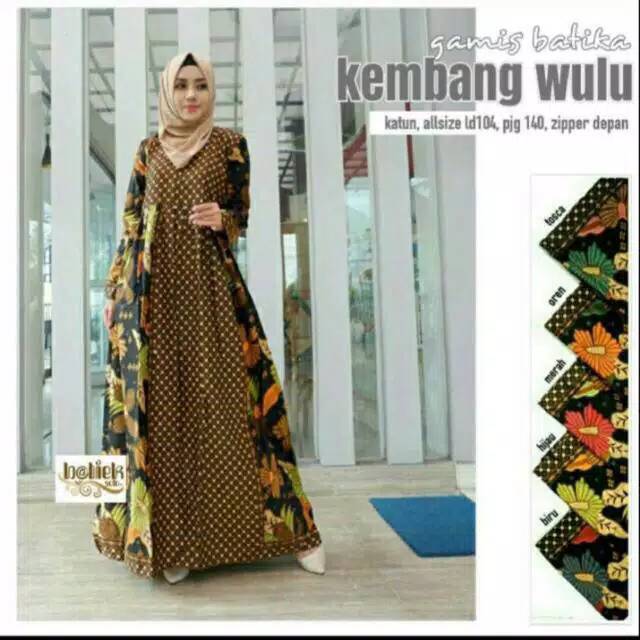 Promo Fashion M di Kota Tomohon Gamis Batika Kembang Wulu / Gamis Batik Modern / Batik Gamis Syari / Long Dress Batik Wanita / dari Tidak Ada Merek Kota Surakarta (solo)