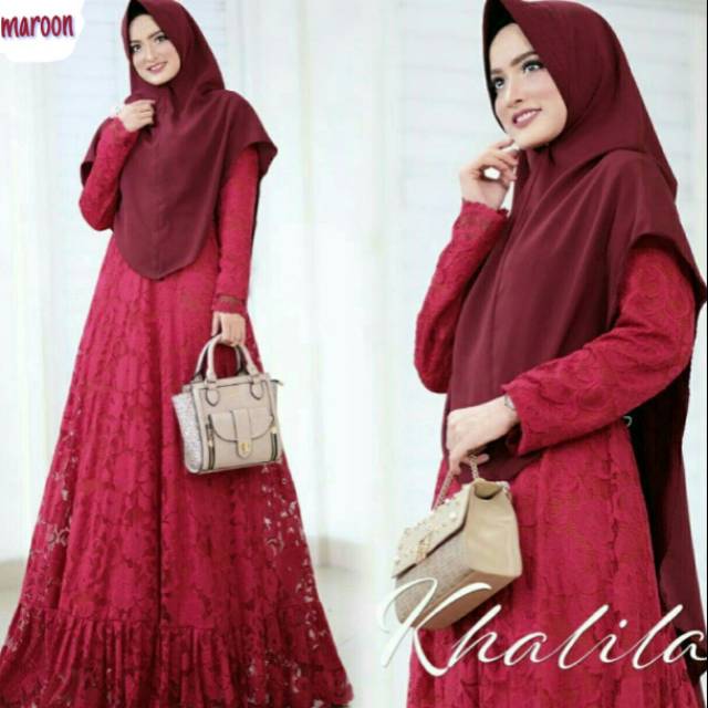 Terlaris Fashion M di Kabupaten Bolaang Mongondow Timur Gamis Ful Brokat Kalila Gamis Batik Warna Merah Maron Resleting Belakang dari Tidak Ada Merek Kota Pekalongan