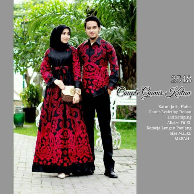 Name: Pf25bc Batik Couple Sarimbit Gamis Kenongo Warna Merah Hitam Elegan